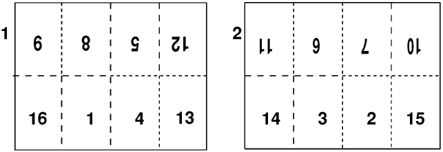 But those of you who wish to stick to the A3 [being halved three times] and 16 pages being stuck to both sides of the A3 ready for photocopying, let's have a look at the numbering of the pages. So that when you cut up all the folds except the centre one you are ready for stapling.