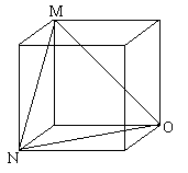As M is the middle of arc AB, OM is the angle bisector of AOB. So is NO for angle BOC. Now I want to find the angle between OM and ON. \par In the cube below, OM and ON are in the same positions as OM and ON in the sphere. OM and ON are congruent, but they are also congruent with MN, so that triangle MNO is equilateral, and the angle between OM and ON has a measure of $60^o$.