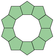 Place equal, regular pentagons together to form a ring. How many pentagons will be needed?