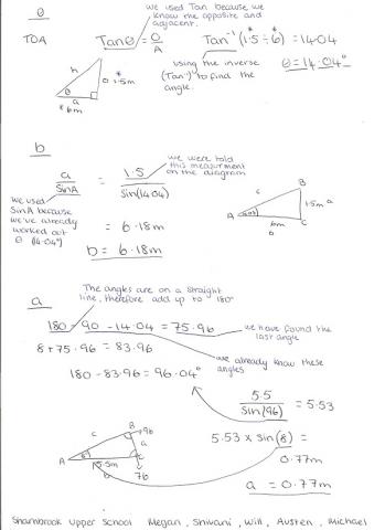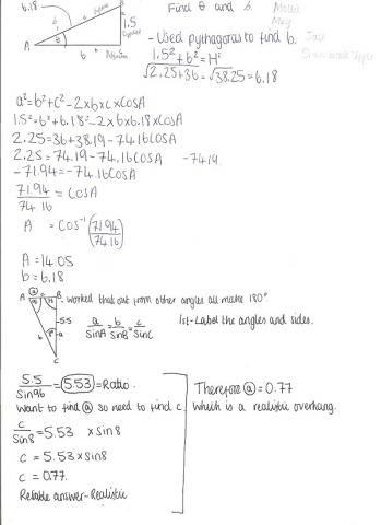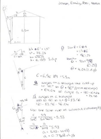 Also find the sloping distance $b$ from the top of the roof to the top of the walls.