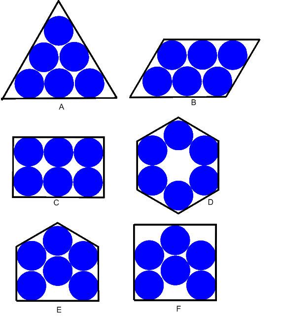 Six circular discs are packed in different-shaped boxes so that the discs touch their neighbours and the sides of the box. Can you put the boxes in order according to the areas of their bases?