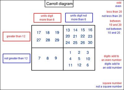 Thank you also to Cong from St Peter's Roman Catholic Primary School and Callum and Katie from Eynesbury CE(C) School for their solutions. Callum and Katie, you were so close in the second Carroll diagram, there was just one heading which you had slipped up on. Perhaps you can see why Cong's works? Here is Cong's completed diagram for the second challenge: