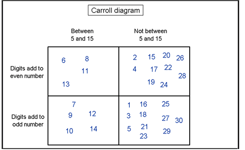 Can you put the numbers in the correct place in this Carroll diagram?