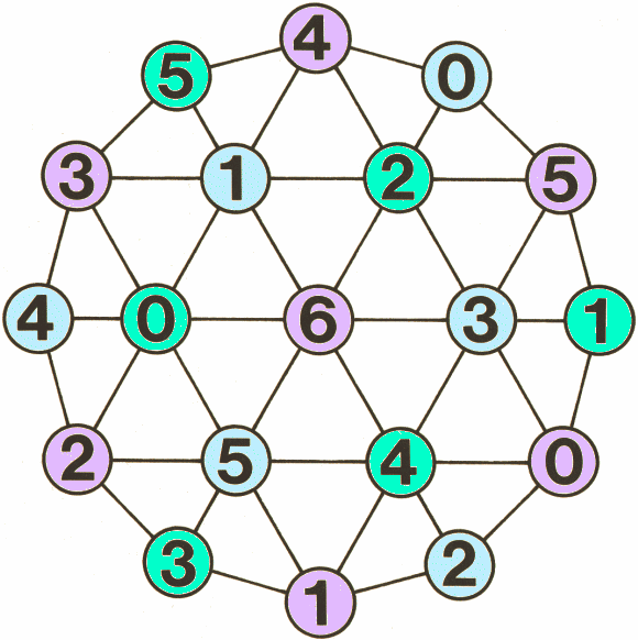 3. Player 1 moves the same counter in any direction along a line segment to a neighbouring number and announces the total of the two numbers.