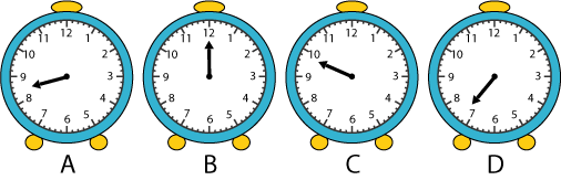 Approximately what time do you think each clock is showing?