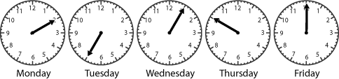 One week these were the times she saw: