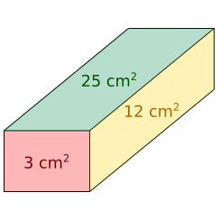 A box has faces with areas 3, 12 and 25 square centimetres. What is the volume of the box?